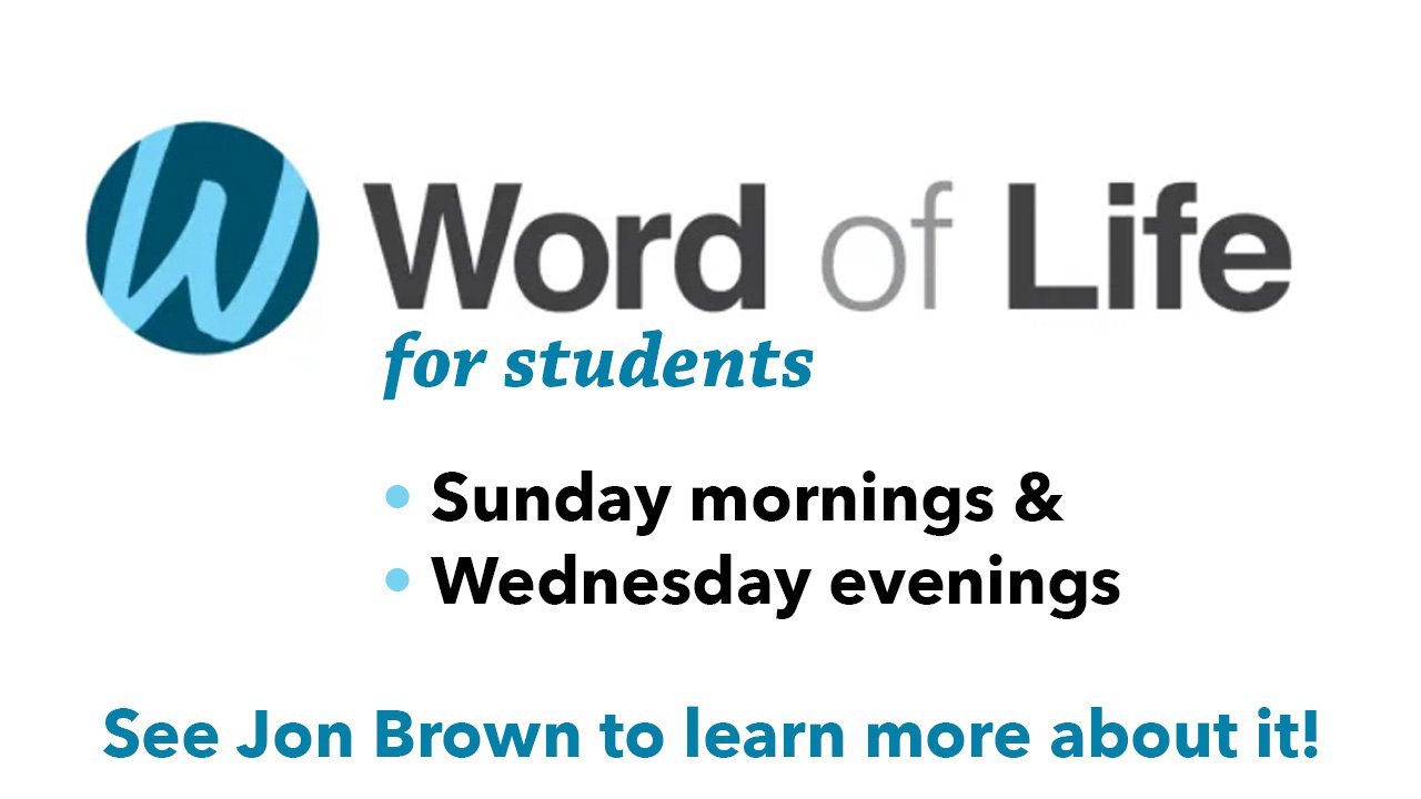 Come Wednesday at 6 or join us on Sunday at 10:15 for Word of Life
